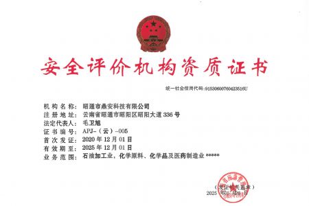 2003年11月10日,昭通市鼎安科技有限公司成立,初始主要從事第三方安全工程技術(shù)服務,經(jīng)多年運營,發(fā)展為多專業(yè)綜合科技平臺,為社會提供多種專業(yè)技術(shù)服務工作。 現(xiàn)公司注冊資金為1200萬元,公司法定代表人:毛衛(wèi)旭。公司主要業(yè)務:安全評價、安全標準化評審、安全工程技術(shù)服務;環(huán)境監(jiān)測、職業(yè)衛(wèi)生檢測、檢驗;法律訴訟及非訴訟服務;司法鑒定、固定資產(chǎn)投資項目節(jié)能服務;工程咨詢;工程測量測繪;安全教育培訓等。是安全生產(chǎn)服務、安全教育培訓機構(gòu),也是環(huán)境監(jiān)測和職業(yè)衛(wèi)生服務機構(gòu),同時也是綜合的檢測檢驗、綜合科技平臺服務機構(gòu)。多年來為公、檢、法、司、軍、警、海關(guān)、仲裁、安監(jiān)、工礦商貿(mào)企業(yè)、社會團體及個人提供多專業(yè)技術(shù)服務。